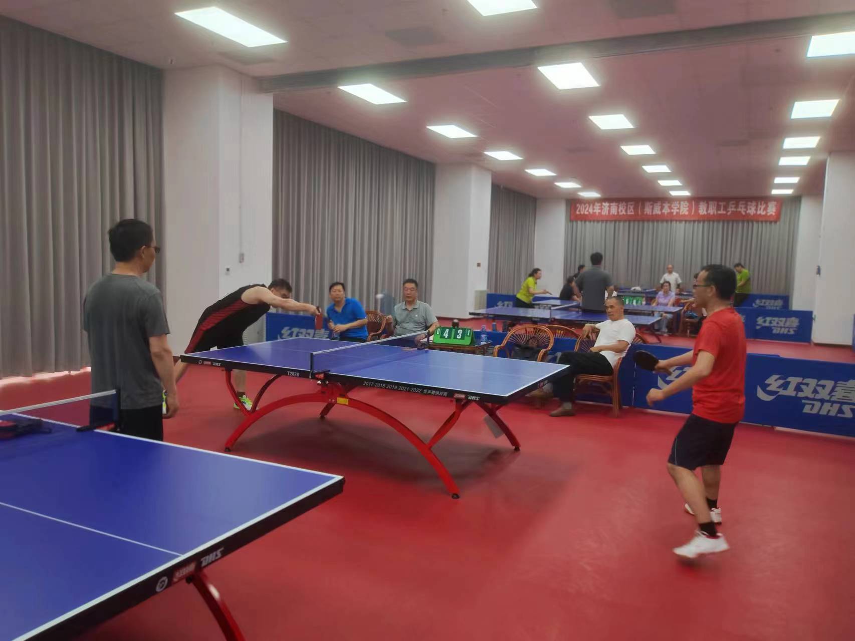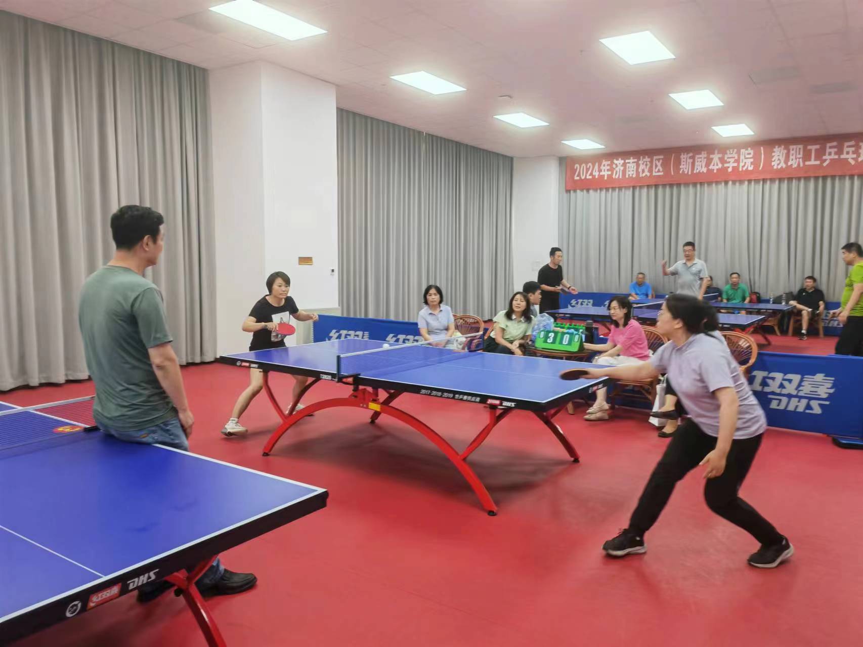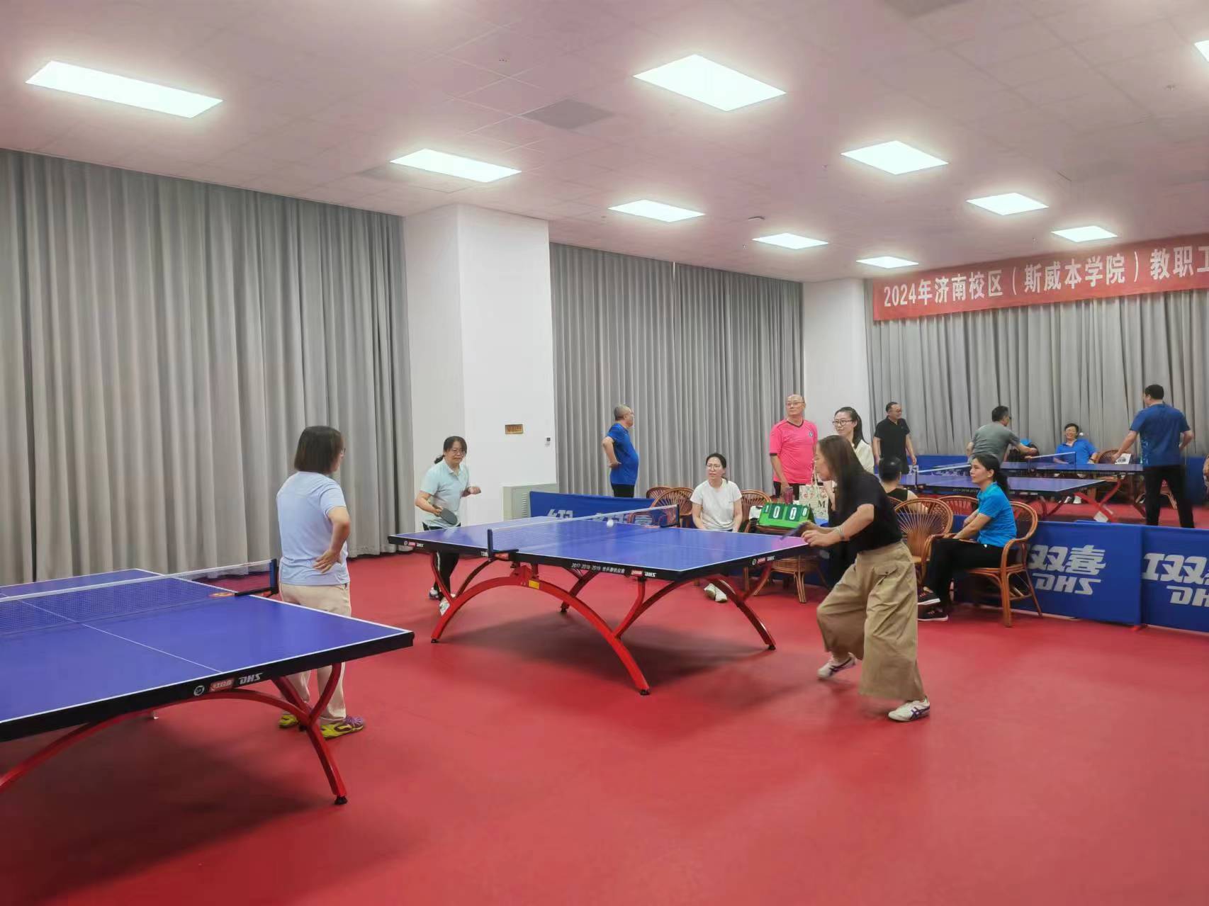 6月4日,歷時5天的濟南校區(qū)2024年教職工乒乓球比賽在藝體樓精彩落幕。來自校區(qū)各工會小組的5支代表隊50余名運動員參加了比賽。經(jīng)過激烈角逐,教師三隊勇奪冠軍,管理一隊、教師一隊分獲亞、季軍。