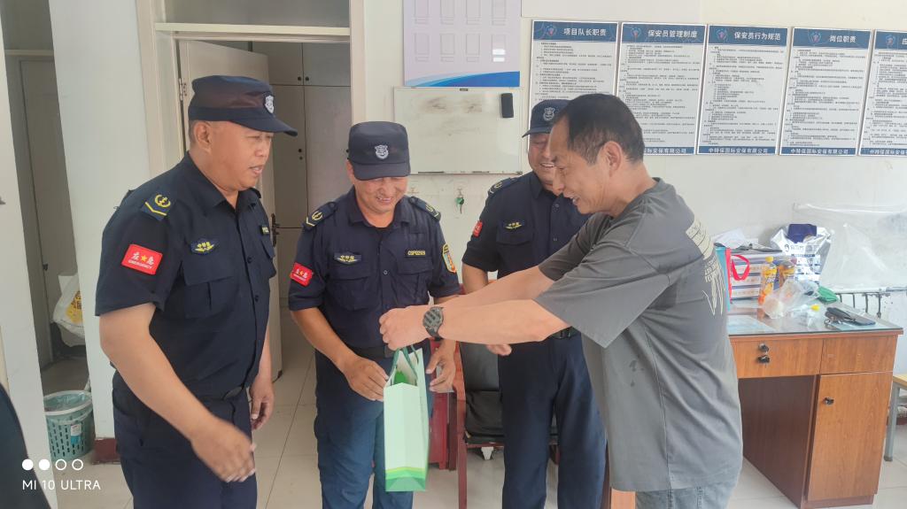 隨后,一行人先后到校門口、辦公樓看望值班安保人員,為值班人員送上防暑降溫物品。