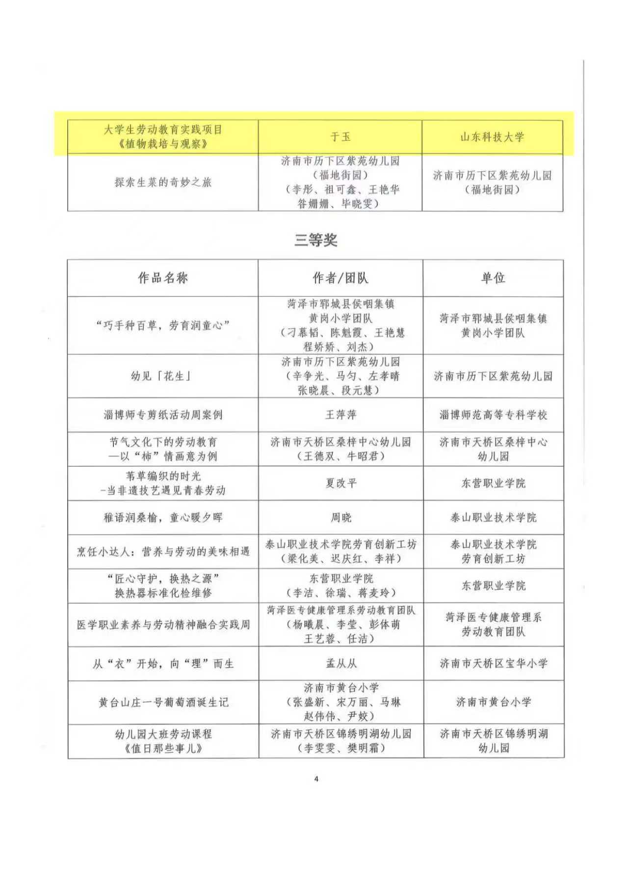 近日,財(cái)經(jīng)系于玉老師在山東省總工會(huì)、山東廣播電視臺(tái)、山東教育電視臺(tái)、山東成人教育協(xié)會(huì)、山東省戶外教育協(xié)會(huì)聯(lián)合舉辦的“2025第三屆山東省勞動(dòng)教育課程資源開(kāi)發(fā)競(jìng)賽”中,獲得校內(nèi)勞動(dòng)教育課程開(kāi)發(fā)組二等獎(jiǎng)。