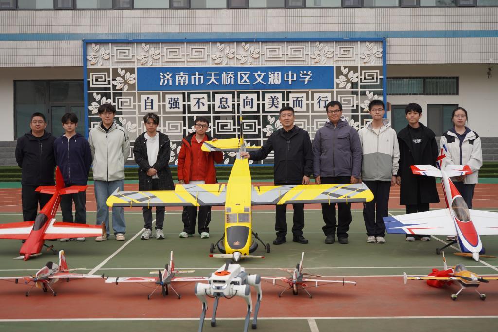 活動(dòng)現(xiàn)場(chǎng),來自濟(jì)南校區(qū)的無(wú)人機(jī)在文瀾中學(xué)操場(chǎng)上空劃出優(yōu)美軌跡,進(jìn)行了編隊(duì)飛行、精準(zhǔn)懸停、穿越障礙等一系列高難度演示,四足機(jī)器人展示了穩(wěn)健行走、上下樓梯、連續(xù)跳躍等能力,引來在場(chǎng)師生的陣陣掌聲。社團(tuán)成員們用通俗易懂的語(yǔ)言,為中學(xué)生們講解了無(wú)人機(jī)的基本原理、應(yīng)用領(lǐng)域與未來發(fā)展趨勢(shì)以及機(jī)器人技術(shù)背后的傳感、決策與控制原理。