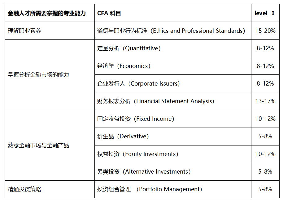 A.核心知識結(jié)構(gòu):CFA(Chartered Financial Analyst)